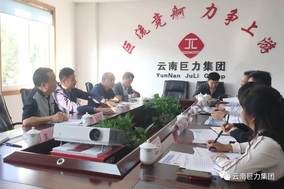 澄江縣政府副縣長朱云海、李潔及相關(guān)部門領(lǐng)導(dǎo)座談會(huì)聽取王國新董事長關(guān)于巨力集團(tuán)的情況介紹
