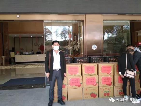 2020年2月2日14時(shí)許,云南巨力集團(tuán)、昆明市湖北荊州商會(huì)到云楨花園酒店看望慰問(wèn)滯留昆明湖北籍旅客,向他們送去蘋(píng)果、桔子各20箱(24公斤/箱)。市工商聯(lián)黨組成員、副主席訾貴金,呈貢區(qū)政協(xié)副主席、區(qū)工商聯(lián)主席楊躍云等同志參加。