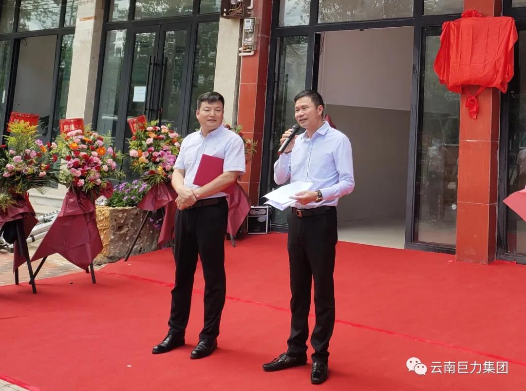 云南巨力集團(tuán)辦公室主任陳紹祥主持揭牌儀式。出席揭牌儀式領(lǐng)導(dǎo)有:澄江市政府副市長(zhǎng)朱云海、工信局局長(zhǎng)兼工業(yè)園區(qū)管委會(huì)主任曾希偉、發(fā)展改革局局長(zhǎng)徐國(guó)坤、自然資源局局長(zhǎng)萬(wàn)江、住房和城鄉(xiāng)建設(shè)局局長(zhǎng)尹文雄、交通運(yùn)輸局局長(zhǎng)王欣、林業(yè)和草原局局長(zhǎng)付銘、投資促進(jìn)局局長(zhǎng)趙麗銖、工業(yè)園區(qū)黨工委書(shū)記羅強(qiáng)、九村鎮(zhèn)鎮(zhèn)長(zhǎng)馬春瑞;云南巨力集團(tuán)董事長(zhǎng)兼總裁王國(guó)新、云南巨力投資有限公司總經(jīng)理王子倫、云南巨力投資有限公司財(cái)務(wù)總監(jiān)馬藝純、澄江浙商產(chǎn)業(yè)園開(kāi)發(fā)公司副總經(jīng)理趙文明和張洪文等相關(guān)負(fù)責(zé)人,以及澄江市工業(yè)產(chǎn)業(yè)轉(zhuǎn)型升級(jí)工作專(zhuān)班成員,建行澄江支行、紅塔銀行澄江支行、澄江巿農(nóng)村信用社領(lǐng)導(dǎo)參加揭牌儀式。