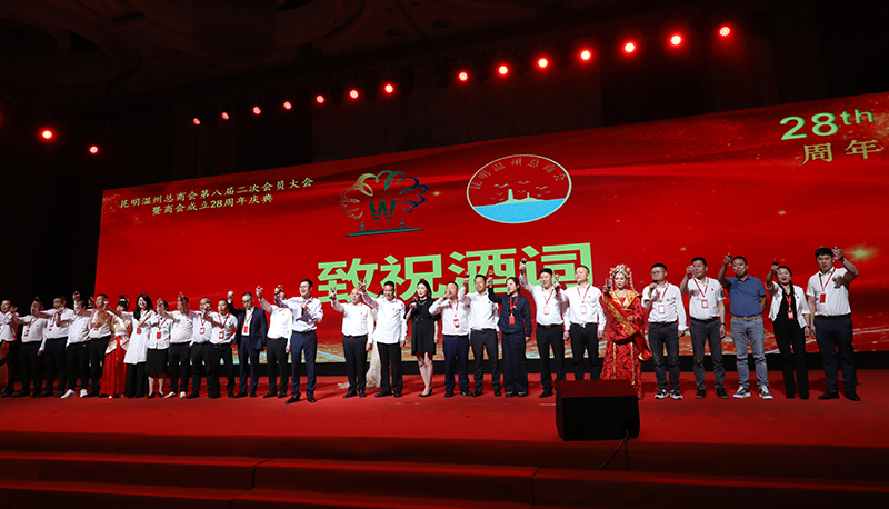8月28日,昆明溫州總商會(huì)在昆明世紀(jì)金源大飯店隆重舉行以“弘揚(yáng)四千精神、助力共同富!睘橹黝}的第八屆二次會(huì)員大會(huì)暨商會(huì)成立28周年慶典。