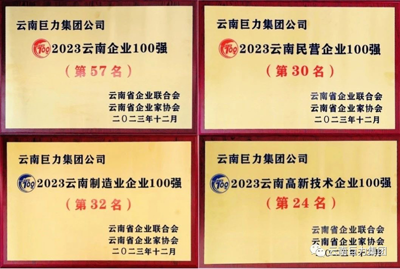 喜訊:云南巨力集團榮獲云南省四項百強企業(yè)殊榮