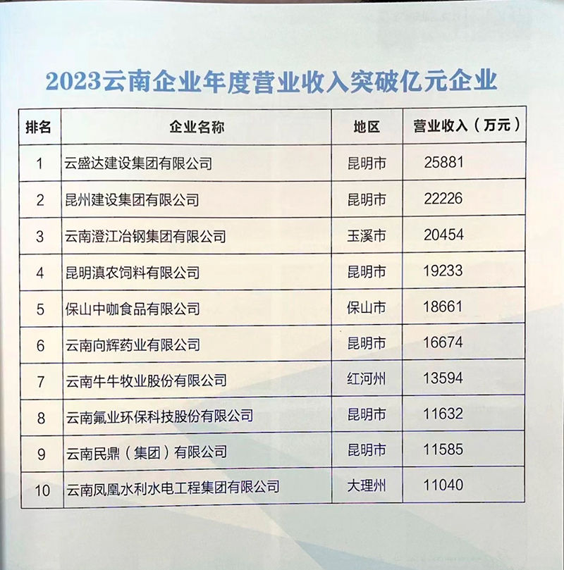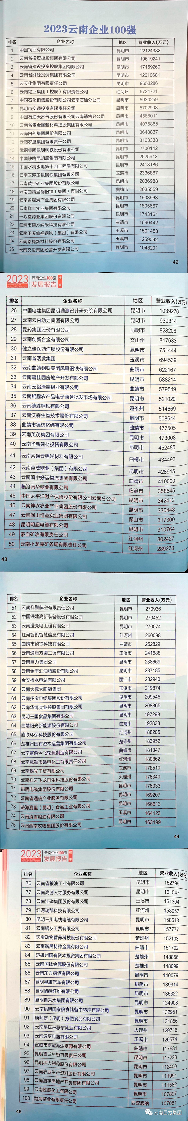 據(jù)了解,“2023云南企業(yè) 100 強”榜單是按照國際慣例,以企業(yè)自愿參加,自愿申報為原則,根據(jù)各申報企業(yè)在 2022 年度的實際營業(yè)收入從高到低的順序而排列出來。2023 云南企業(yè) 100 強企業(yè)入圍門檻為 10.70 億元,中國銅業(yè)有限公司以 2212.43 億元摘得“2023 云南企業(yè) 100 強”桂冠。