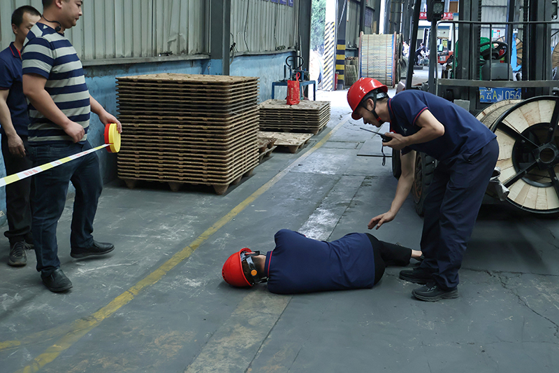 在13:00至14:20期間,巨力電纜和巨力電氣生產(chǎn)一線員工參與了包括灼燙傷、有限空間作業(yè)事故、電梯人員被困、叉車事故以及危廢泄漏事故的應(yīng)急救援演練。這些演練在巨力電氣車間和巨力電纜車間進行,通過真實場景模擬突發(fā)生產(chǎn)事故應(yīng)急救援,確保了一線員工對各類突發(fā)事件的應(yīng)對能力。