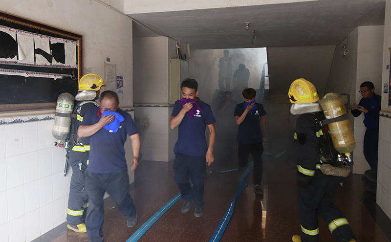 全體員工分組上陣分別進行逃生演練和滅火器實操演練。