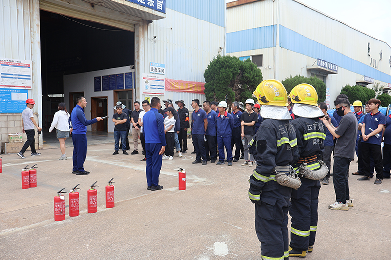 14:30,云南巨力集團下轄物流公司、電纜公司、電氣公司、銅業(yè)公司全體員工及租戶代表(滇昌公司)安全管理人員及昆明經(jīng)開區(qū)消防救援大隊春漫消防站專業(yè)消防人員在籃球場集合,參與了活動啟動儀式。