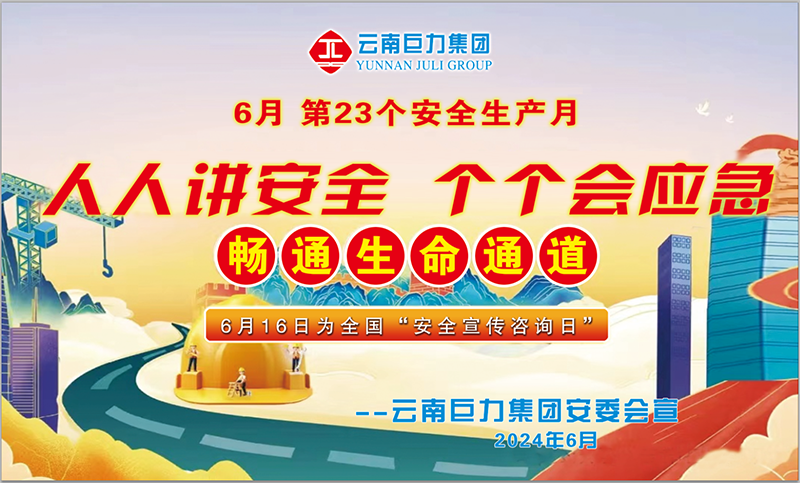 今年6月是全國第23個“安全宣傳月”,今年的宣傳主題是“人人講安全,個個會應(yīng)急,暢通生命通道”,從6月1日開始,云南巨力集團安委會就緊緊圍繞主題,通過標語、滾動電子屏、短視頻、公眾號等開展了一系列宣傳活動。