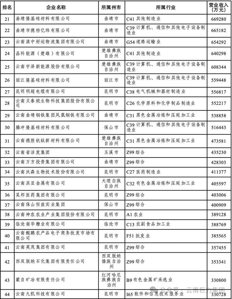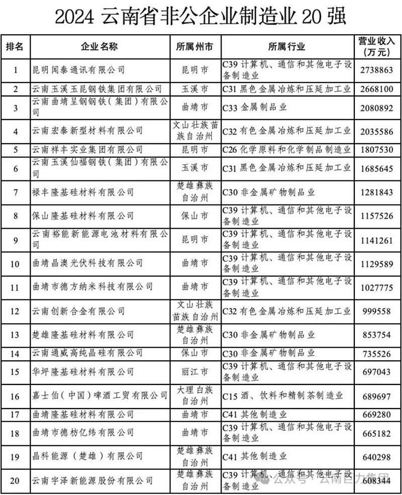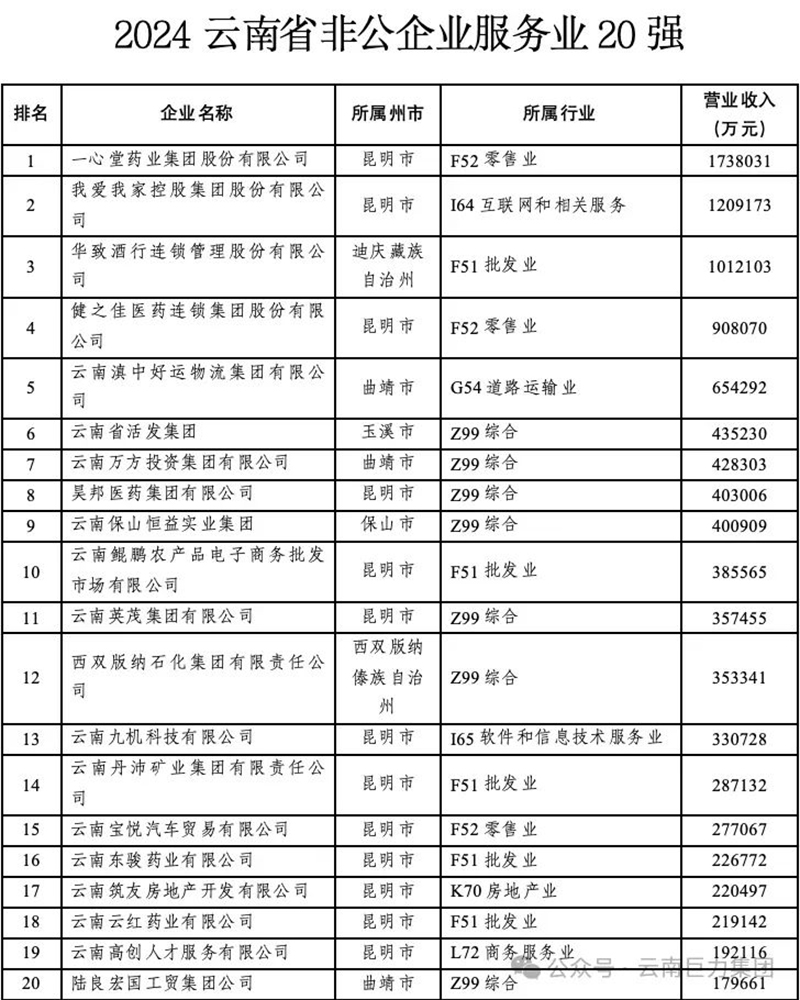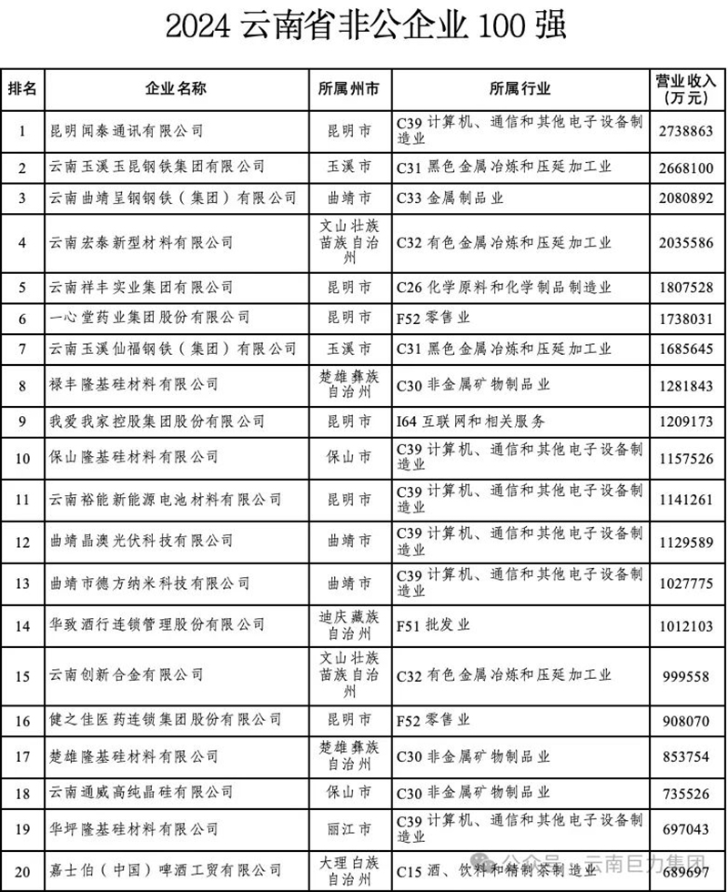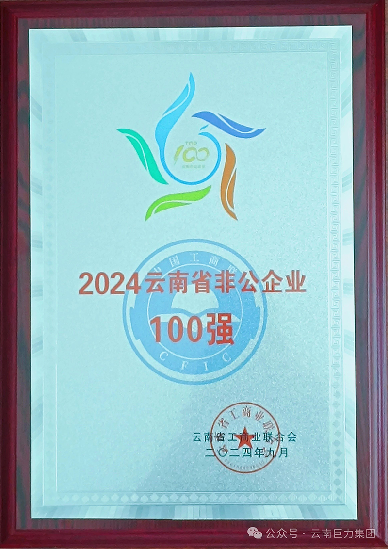 云南巨力集團連續(xù)八年榮登云南省非公企業(yè)100強榜單
