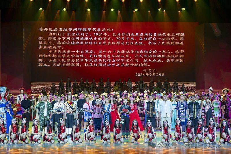 10月18日,由中共云南省委統(tǒng)戰(zhàn)部、云南省民族宗教事務(wù)委員會、云南省教育廳主辦,云南省民族團(tuán)結(jié)進(jìn)步促進(jìn)會承辦的“石榴花開·彩云南”——慶祝中華人民共和國成立75周年文藝匯演活動在云南文化藝術(shù)職業(yè)學(xué)院舉行。云南省民族團(tuán)結(jié)進(jìn)步促進(jìn)會會長李曉燕、副會長王國新、陳潔等16位主要領(lǐng)導(dǎo)登臺聯(lián)袂獻(xiàn)唱,合唱歌曲《中華民族一家親》。