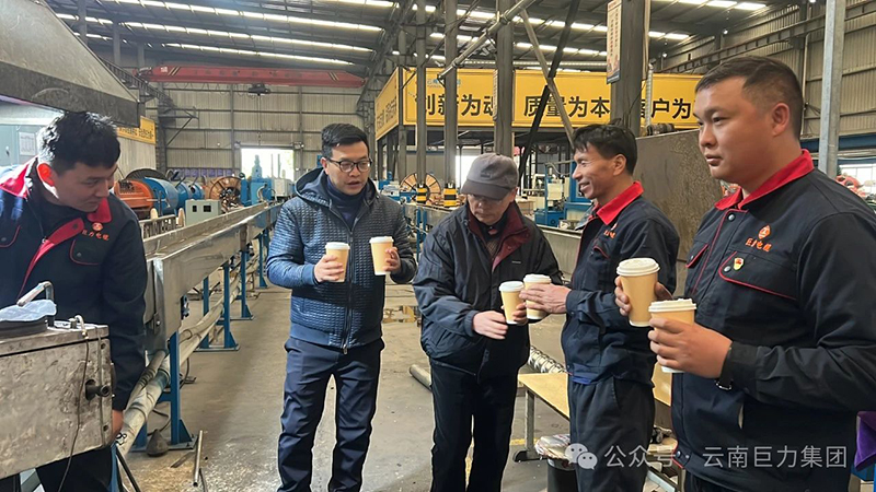 3月18日清晨,春城昆明迎來罕見倒春寒,氣溫?cái)嘌率较碌,驟降至3℃,細(xì)碎的雪花伴著冷風(fēng)簌簌飄落。而在云南巨力電纜股份有限公司的生產(chǎn)車間里,機(jī)器轟鳴聲與員工專注工作的身影交織成火熱的生產(chǎn)圖景。面對突如其來的寒潮,公司工會迅速行動,將一杯杯熱氣騰騰的姜湯送到生產(chǎn)線旁,用"家的溫度"為堅(jiān)守崗位的工友們驅(qū)散料峭春寒。