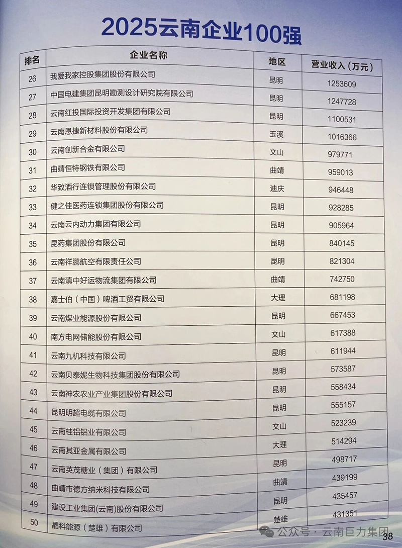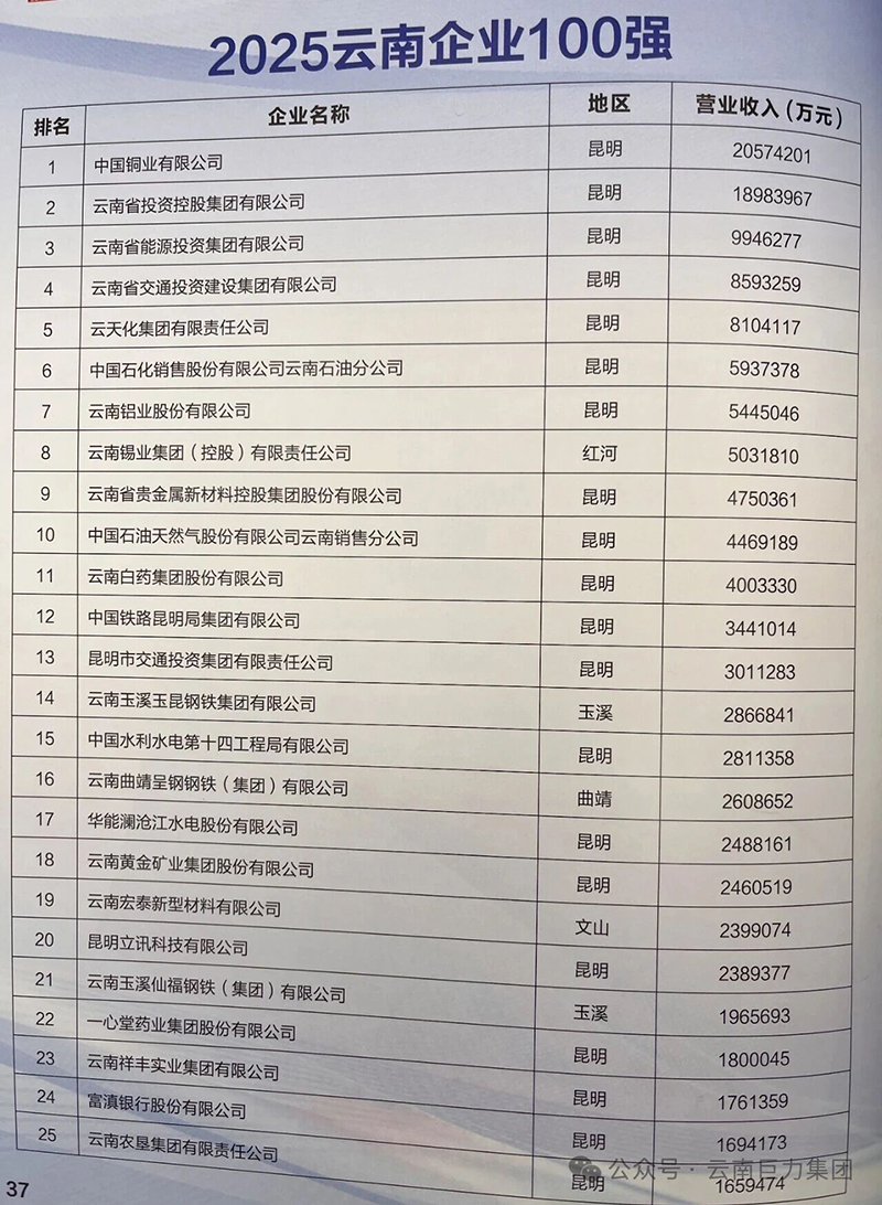 再次祝賀云南巨力集團榮登“2025云南企業(yè)100強”三大榜單!