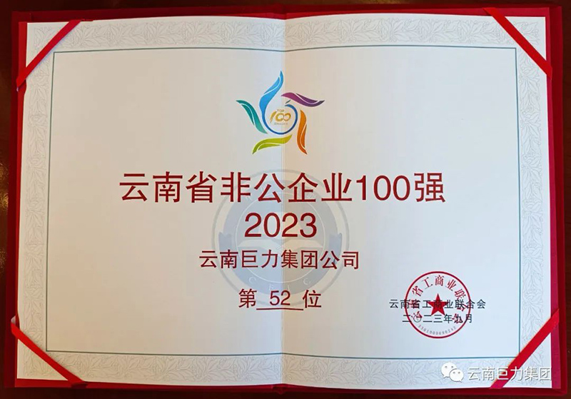喜訊:云南巨力集團(tuán)再次榮登“2023云南省非公企業(yè)100強(qiáng)”榜單,位列第52位