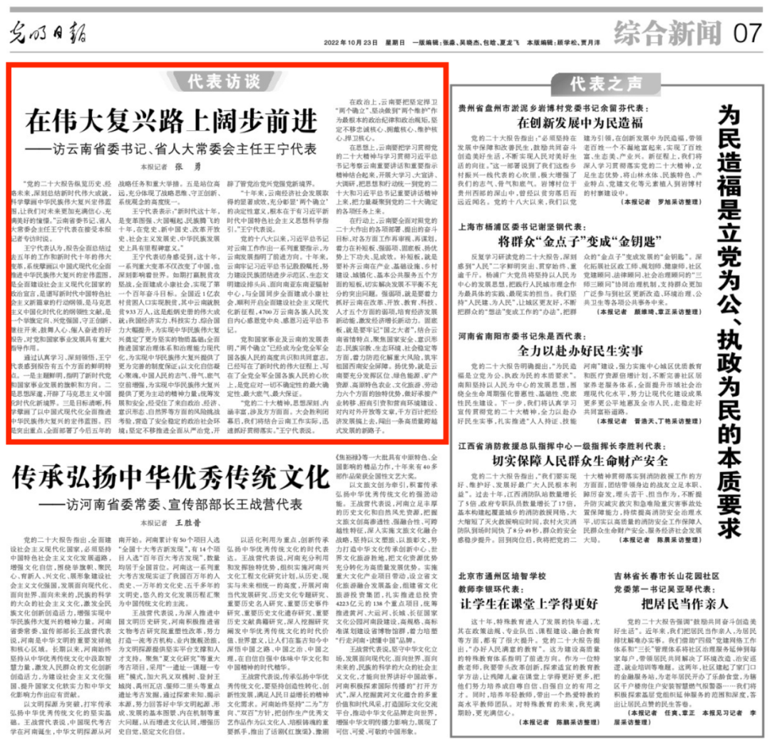 在偉大復(fù)興路上闊步前進!《光明日報》專訪云南省委書記、省人大常委會主任王寧